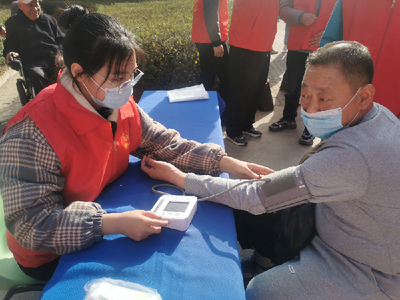 演出結束后,醫生們為老人們義診,用不同的善心義舉表達著對老人們的濃濃關愛。義診現場,老人們排起了長隊,擼起袖子,護士們忙著為老年朋友們測血壓等,醫生們一對一的對老人們進行義診。前來檢查的老年人有測量血壓的、有測量血糖的,醫療人員耐心地為他們解答相關疾病的預防和治療問題,對于他們的日常生活保健,常見病、多發病的預防和控制等方面進行了專業指導。