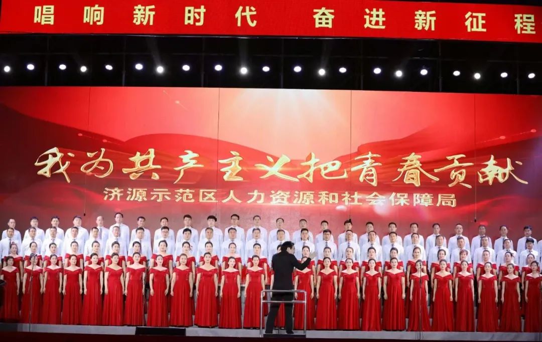 “我為祖國生,我為革命長,我為共產主義把青春貢獻……”示范區人社局合唱隊參賽的曲目是《我為共產主義把青春貢獻》和《眾人劃槳開大船》,歌曲贊頌了崇高英勇的共產主義革命形象和團結奮進建新功的拼搏精神,表達了對中國共產黨的無限熱愛之情。