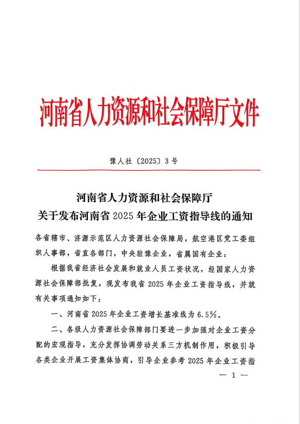 ?附件:河南省人力資源和社會保障廳關于發布河南省2025年企業工資指導線的通知