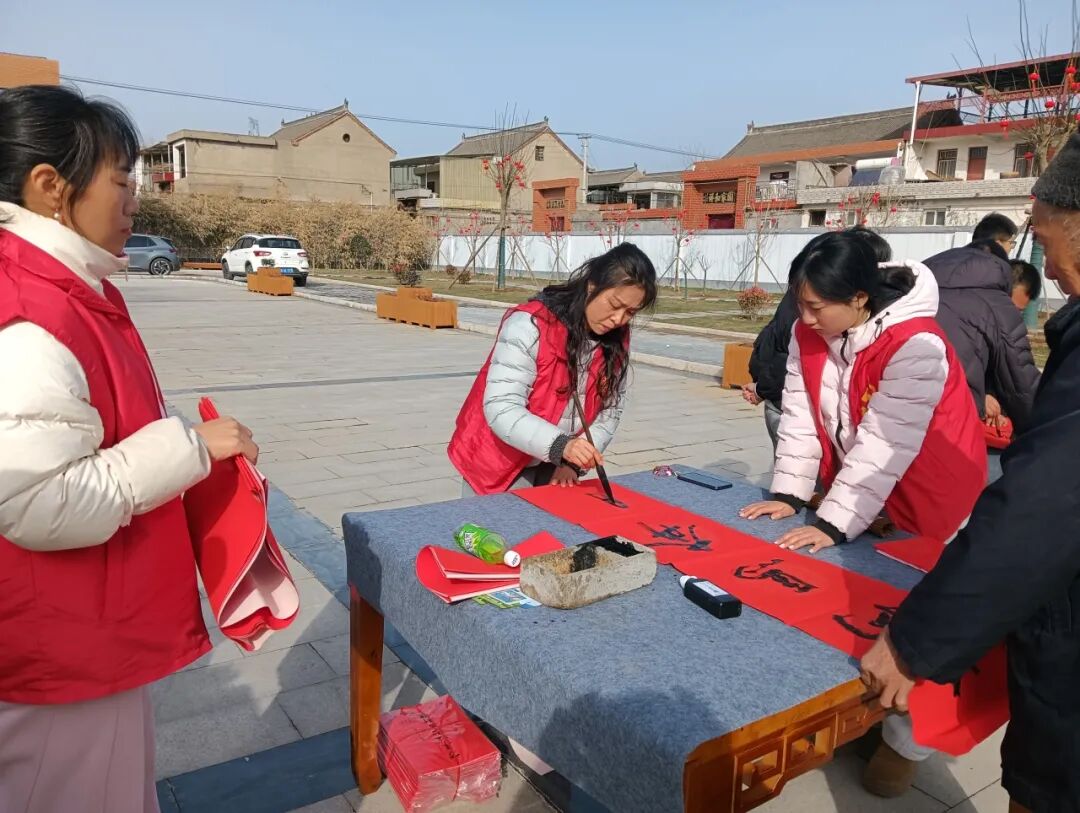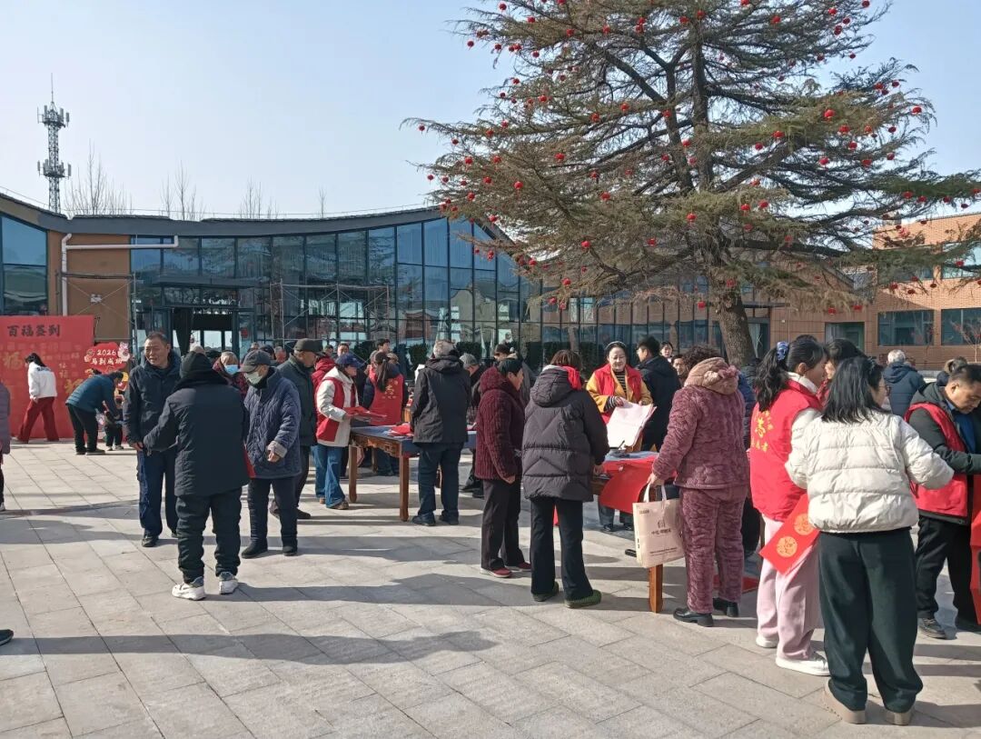 志愿者現場揮毫潑墨,運筆如飛,將美好的祝福融入一幅幅春聯之中,現場氣氛熱烈,大家都沉浸在濃濃的節日氛圍中,當場贈送對聯和“福”字500余份,得到群眾紛紛稱贊。
