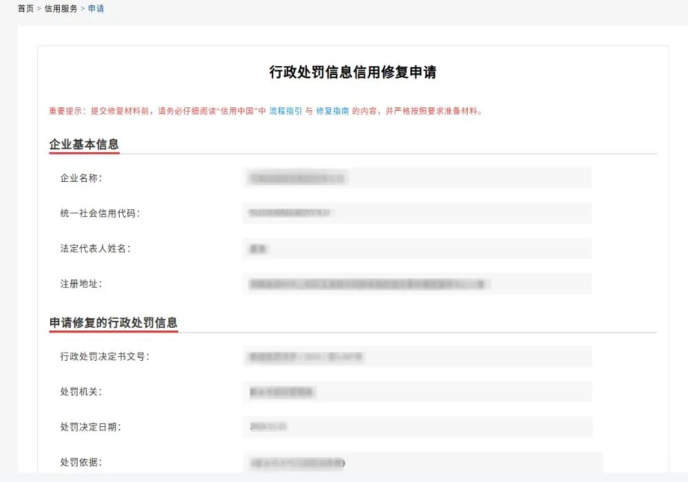 2. 跟著頁面提示填信息:比如公司名稱、統一社會信用代碼、處罰決定書編號、哪個部門罰的、罰的日期和依據,填完提交就行。